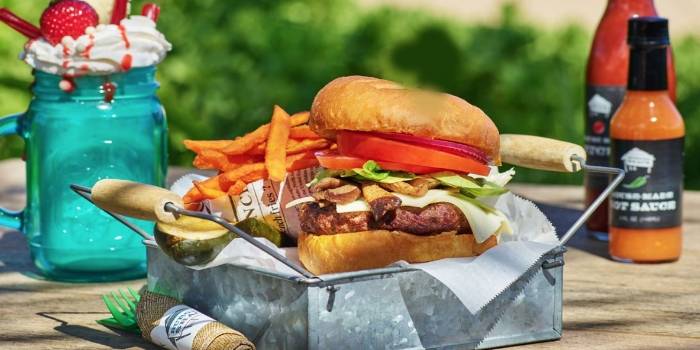 - Ali’i Burger with Maui Cattle Company Grass fed Beef.