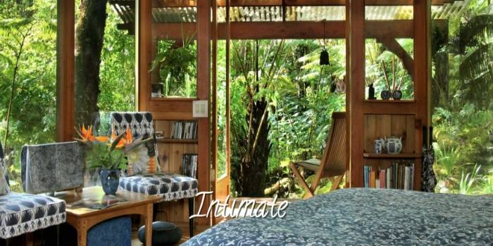 The bed & breakfast retreat is nestled under a lush canopy of giant tree ferns and lofty Ohia trees in a native Hawaiian rain forest, 3800 feet above the sea, on the slopes of Kilauea Volcano. Each retreat accommodation is set into the misty mossy surroundings with deep respect for its wild natural beauty, and emerges as a living part of the primal landscape. The magical rain forest setting offers world travelers an intimate getaway, a peaceful retreat and an active adventure in a place of great natural beauty.